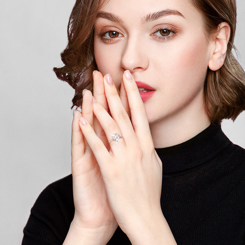 - Classic cluster setting and 6 prong solitaire make the ring blooming with the dazzling light.