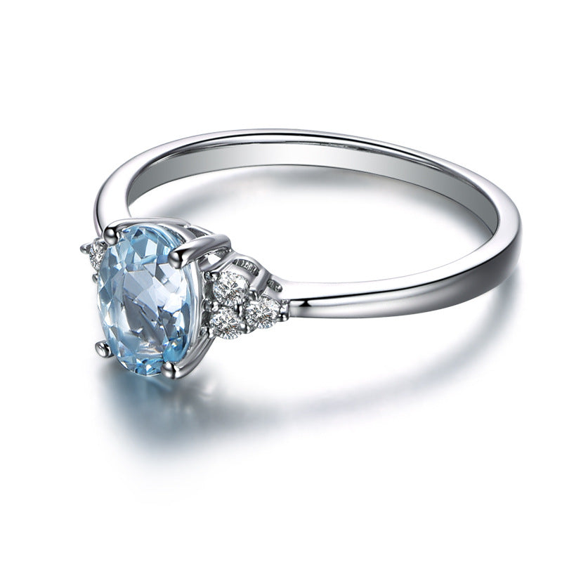 Sky Blue Platinum Simulated Diamond Ring